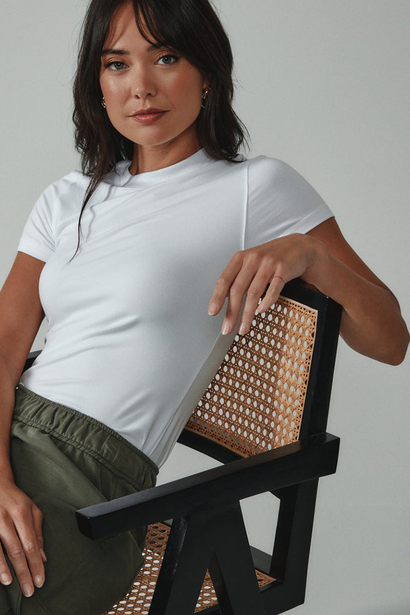 Experience unmatched comfort with the 7DIAMONDS Core™ Crew Neck Tee in White. Crafted from our signature 4-Way Stretch fabric with an ultra-soft finish, this short-sleeve essential moves with you, providing breathability and a buttery-soft feel. Perfect for all-day wear, whether you're relaxing at home or on the go.