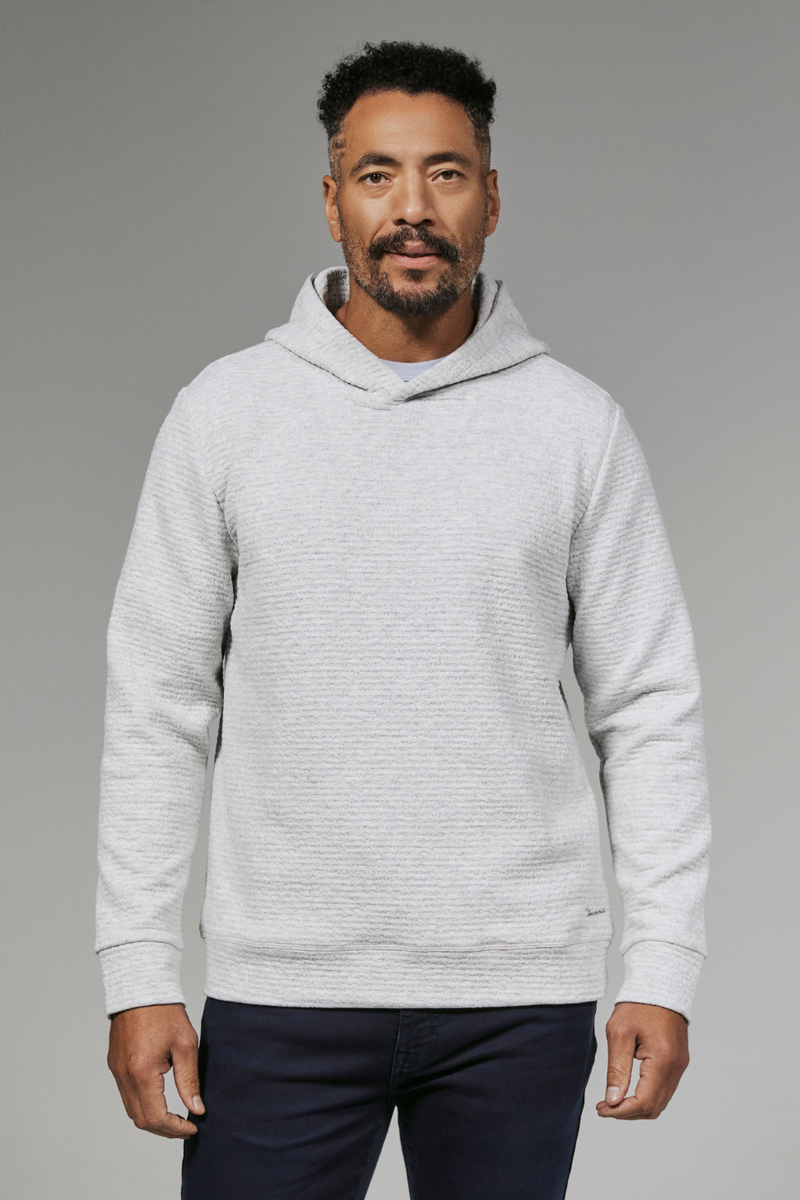 Take your everyday look to the next level with the 7DIAMONDS Elevate Hoodie in Light Grey. Made from a super soft midweight knit blend, this hoodie offers incredible stretch and recovery, making it perfect to wear alone or layer with your favorite jacket, vest, or blazer. Upgrade your style and comfort with this versatile piece.