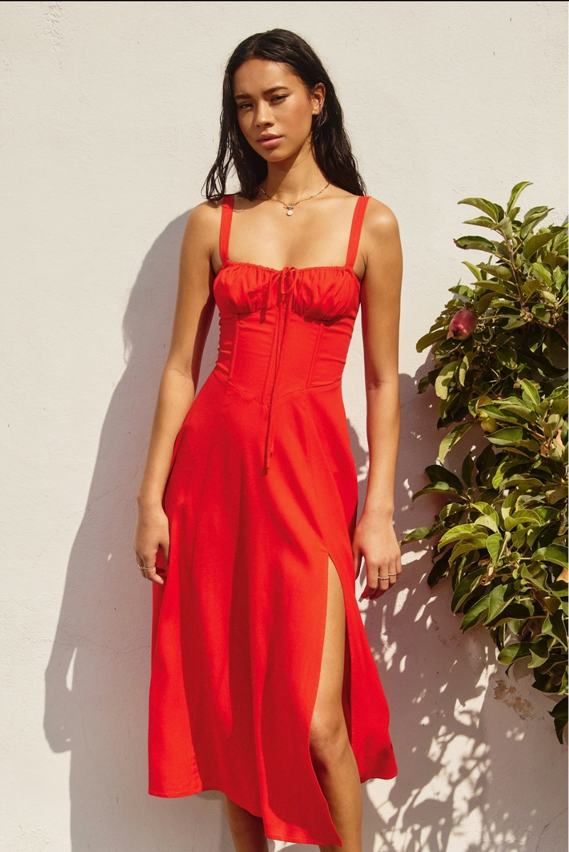 Embrace timeless elegance with this stunning linen-cotton blend midi dress, designed to flatter and inspire confidence. The sweetheart neckline draws attention to your face while the corset-inspired bodice cinches at the waist, creating a beautifully defined silhouette. Crafted from a breathable fabric blend, this dress transitions effortlessly from day to evening, offering both comfort and sophistication. Perfect for those seeking a romantic yet structured look that celebrates feminine curves with understated glamour.