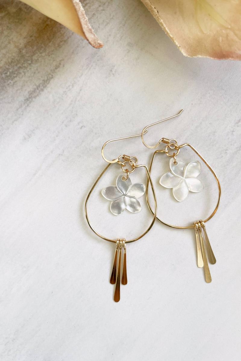 Quinn Sharp - Mother of Pearl Plumeria Flower Hoops | 14kt Gold Filled