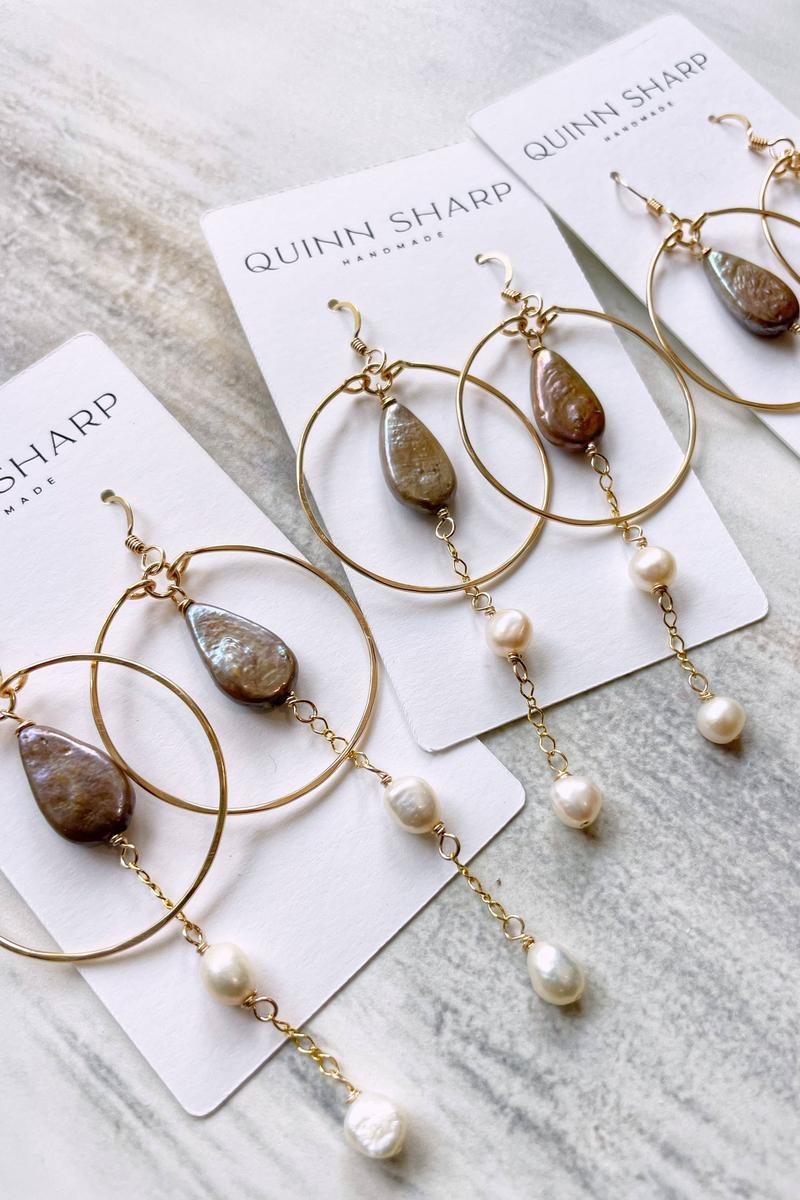 Quinn Sharp - Chocolate Teardrop Pearl Chain Hoops | Gold FIlled