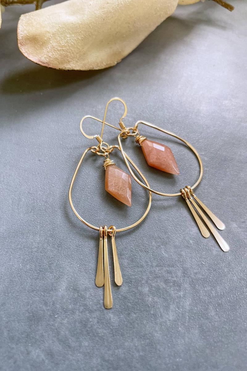 Quinn Sharp - Labradorite and Long Hammered Fringe Hoops in Gold