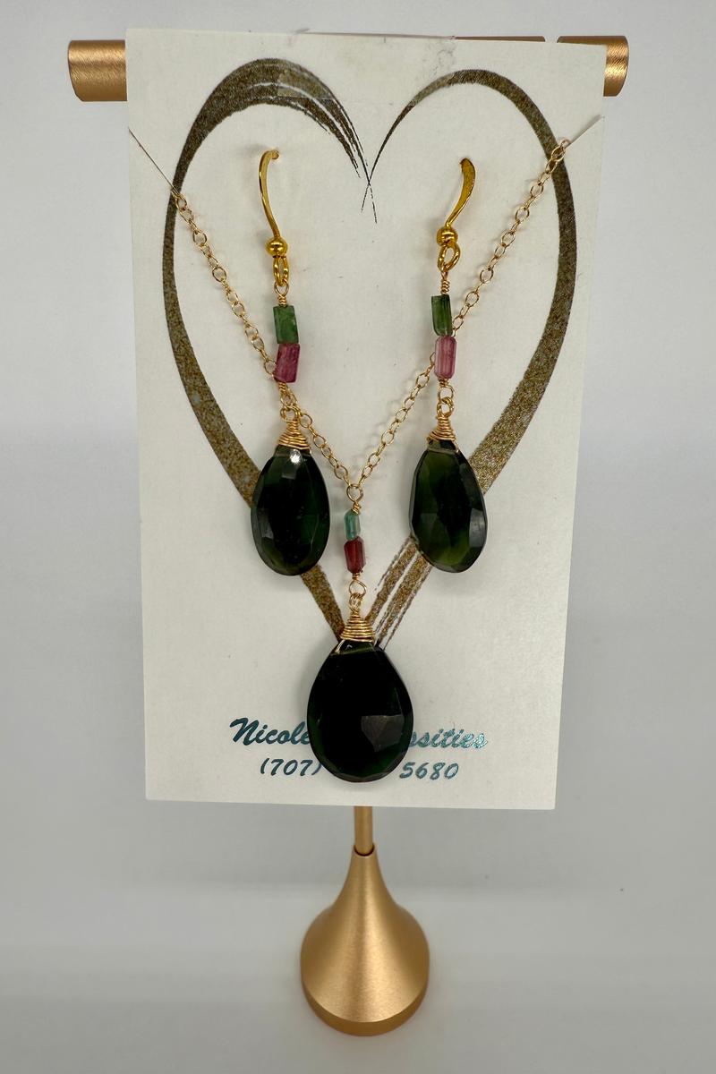 Nicole's Necessities - Gold Vermeil, Andalusite, Tourmaline Necklace and Earring Set
