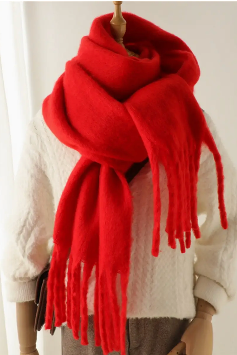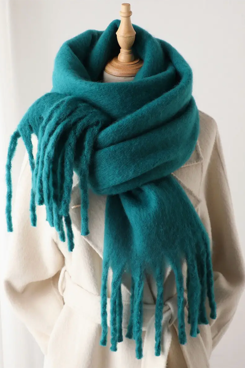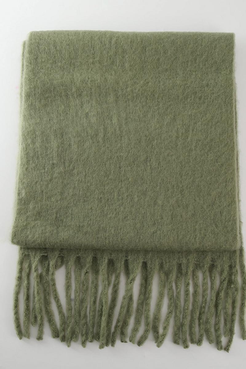 ACCITY - Mohair Tassel Scarf in Dark Green