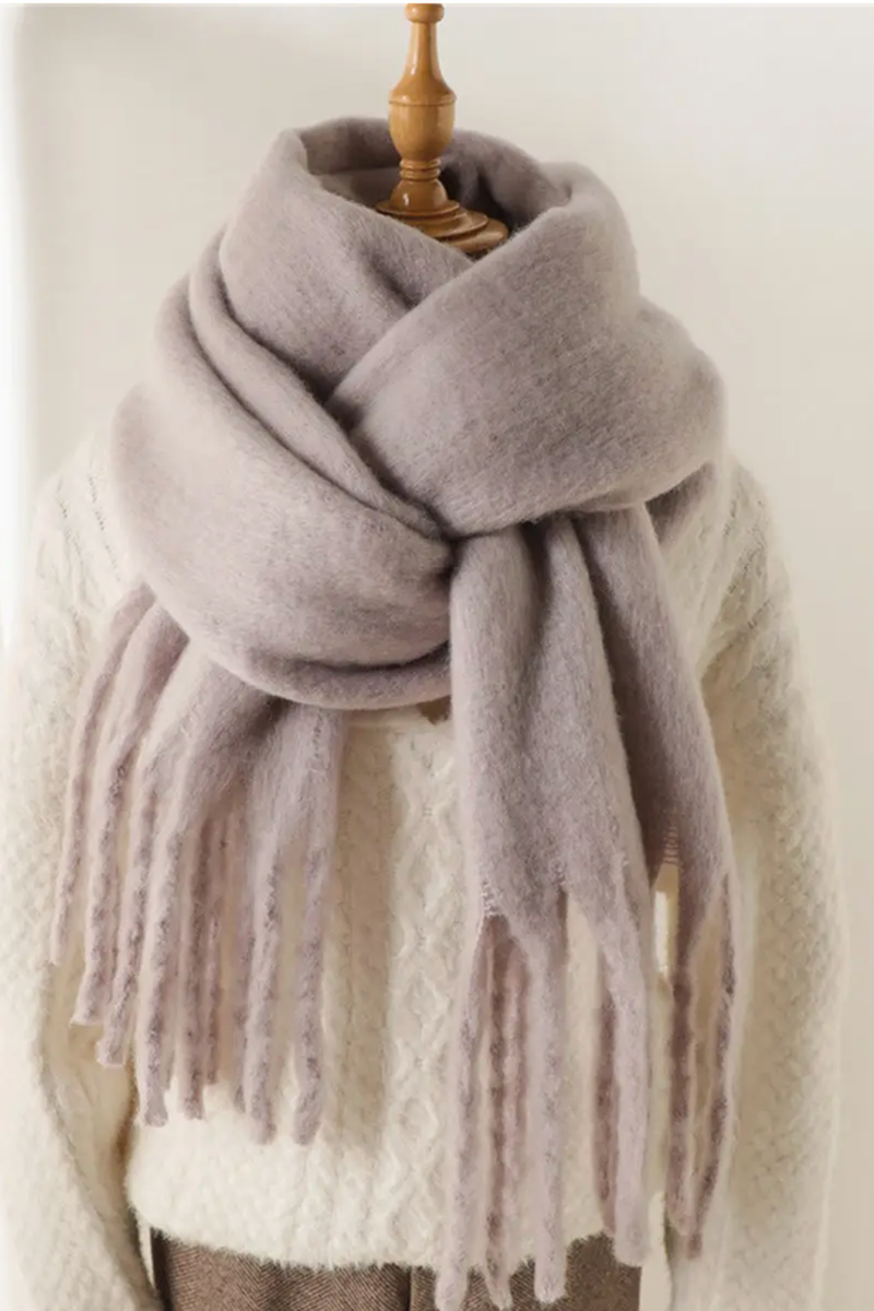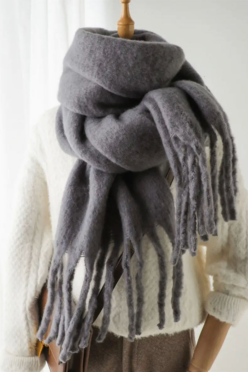 ACCITY - Mohair Tassel Scarf in Dark Grey
