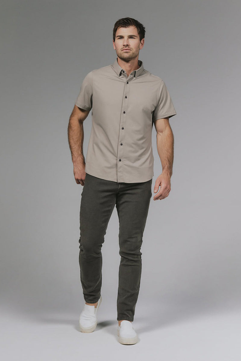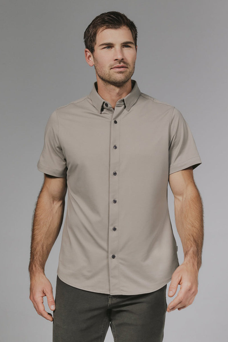 Experience unmatched comfort and style with the 7DIAMONDS Owen Short Sleeve Shirt in Clay. Made from a 4-way stretch structured knit, this shirt offers a lightweight, breathable feel that moves with you all day. Its perfect blend of softness and durability makes it an essential addition to your wardrobe, ideal for both casual outings and polished looks. Elevate your everyday wear with this effortlessly stylish button-up designed just for you.