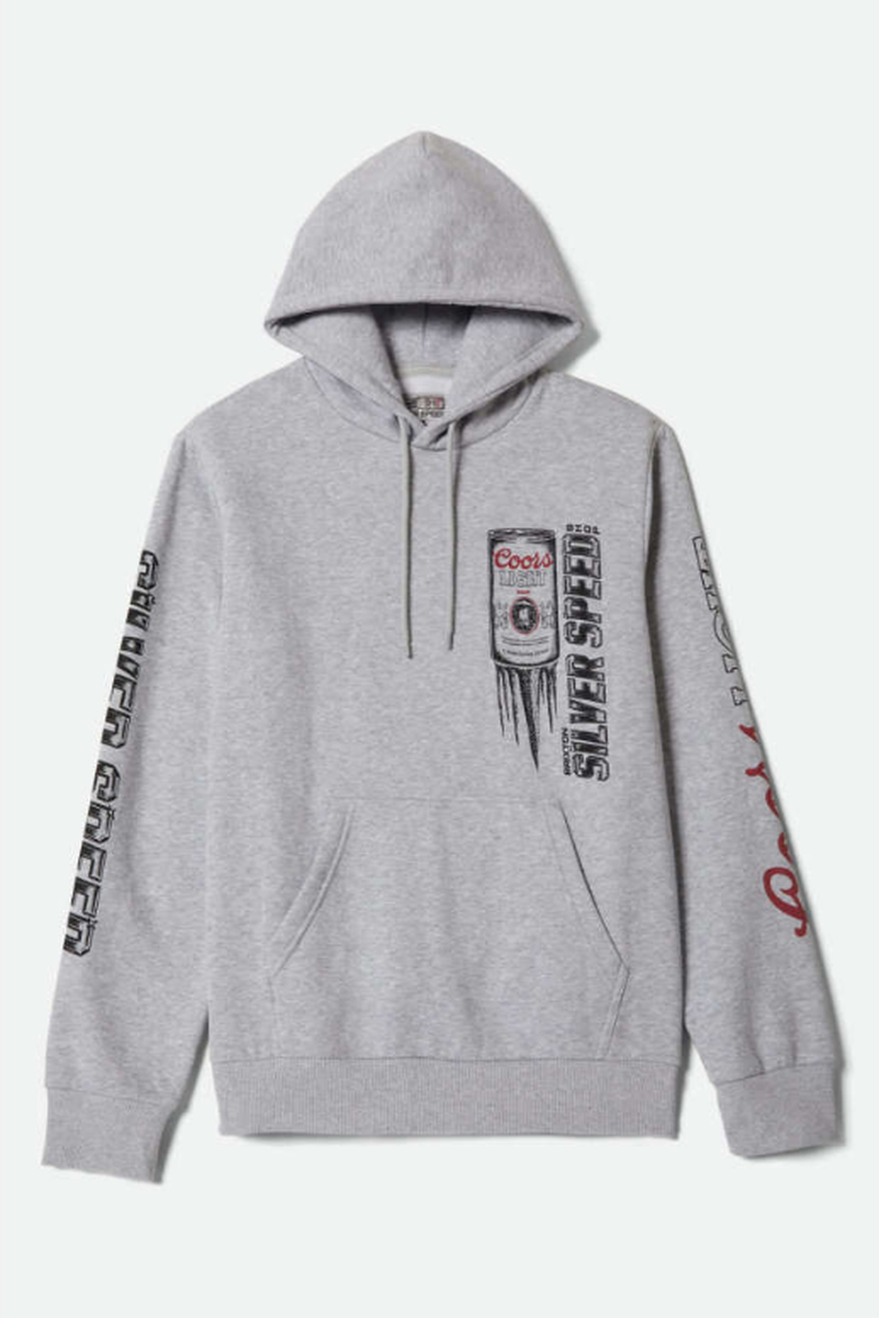 Experience ultimate comfort and style with the Brixton - Coors Light Silver Speed Hoodie in Heather Grey. Made from soft, cozy fabric, this hoodie is perfect for staying warm while making a statement. Its modern silver Coors Light design adds a sleek, dynamic touch that stands out in any casual setting. Whether you're heading out or relaxing indoors, this hoodie delivers both comfort and a cool, contemporary look you'll love to wear every day.