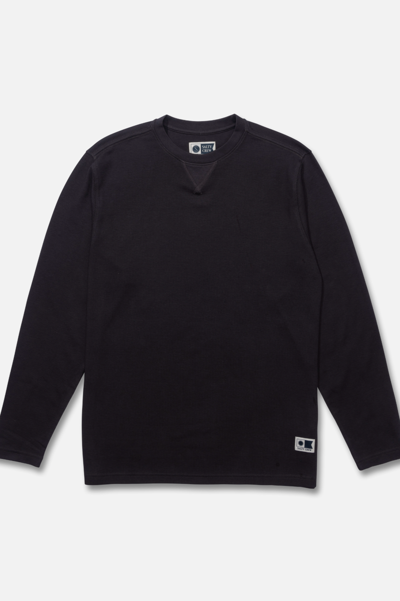 Experience warmth and style with the Salty Crew Cast Off Long Sleeve Thermal in Black. Crafted from mid-weight honeycomb double knit fabric, it offers excellent insulation without bulk. The ribbed collar with a v-stitch gusset adds durable detail and comfort, while the woven label on the lower left body completes its rugged look. Perfect for layering or wearing alone, this thermal keeps you cozy during chilly days, whether on the water or in everyday adventures.