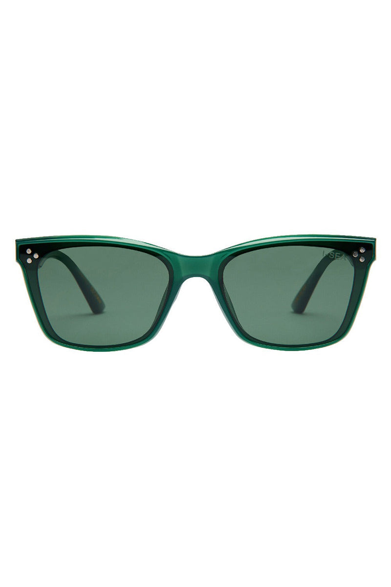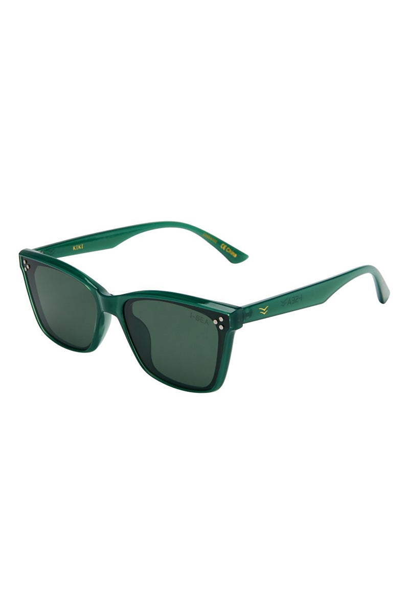 The I-SEA Kiki sunglasses blend timeless style with modern edge, featuring an oversized cat-eye shape perfect for medium faces. Angular accents enhance their unique look, while durable polycarbonate frames ensure long-lasting wear. Green polarized lenses reduce glare, offering clear, comfortable vision wherever you go. Elevate your eyewear game with this striking, versatile pair.