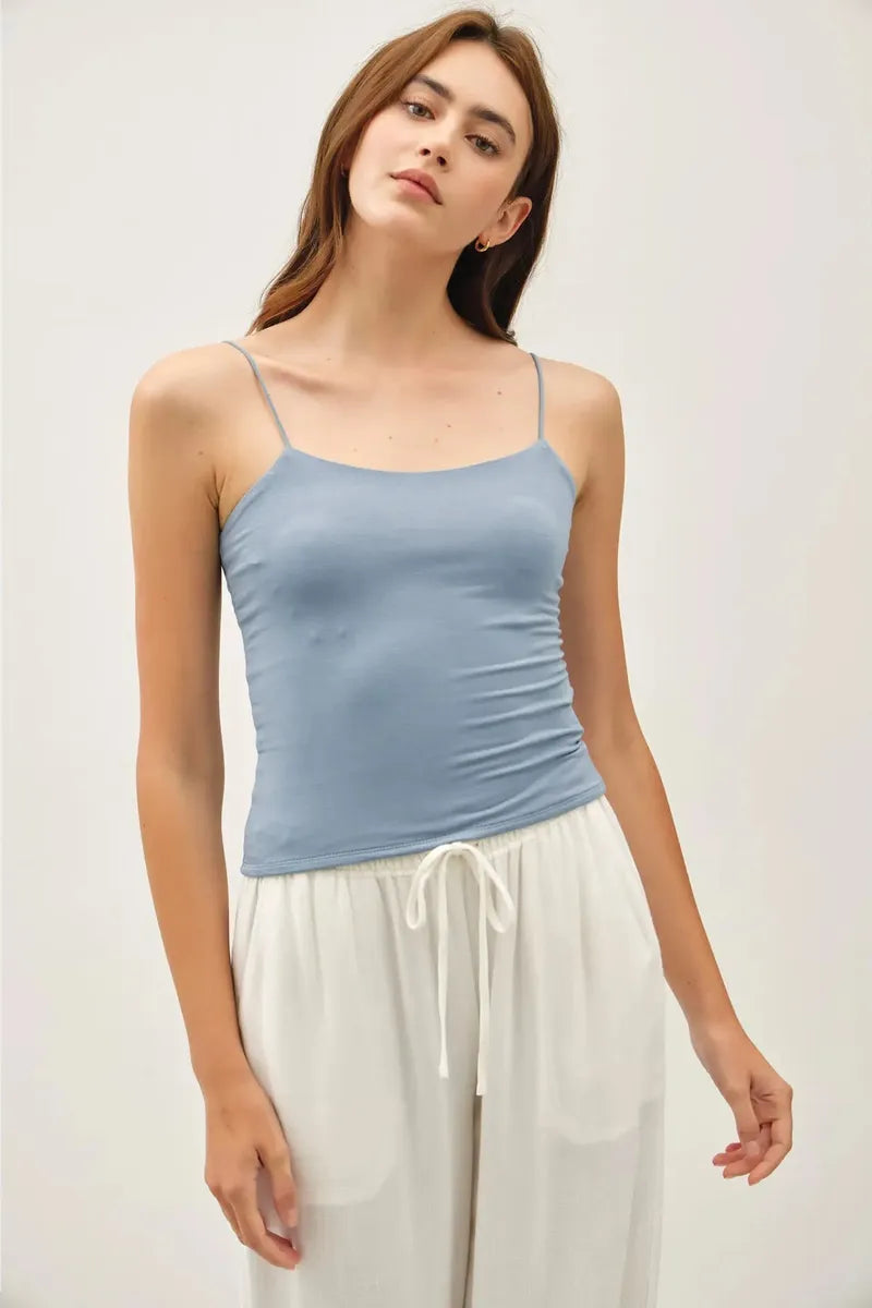 The Be Cool Basic Solid Cami in Retro Blue combines comfort and style effortlessly. Its lightweight, smooth fabric stretches to fit perfectly, while the double-lined design ensures extra coverage. Featuring delicate spaghetti straps and a flattering hip-length cut, this cami is ideal for layering or wearing on its own, making it a versatile addition to any wardrobe. Elevate your everyday look with this essential piece that adapts seamlessly from casual days to dressed-up evenings.