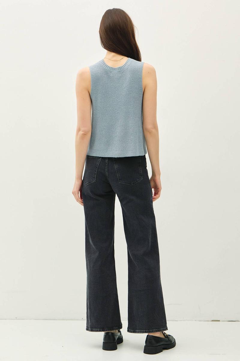 Stay effortlessly stylish with the Be Cool Clean Edge Knit Tank. Featuring a lightweight, ribbed V-neck design and a clean edge finish, this tank offers a flattering boxy cropped cut in a versatile denim shade. Perfect for layering or wearing solo, it combines comfort and modern flair for your warm-weather wardrobe.
