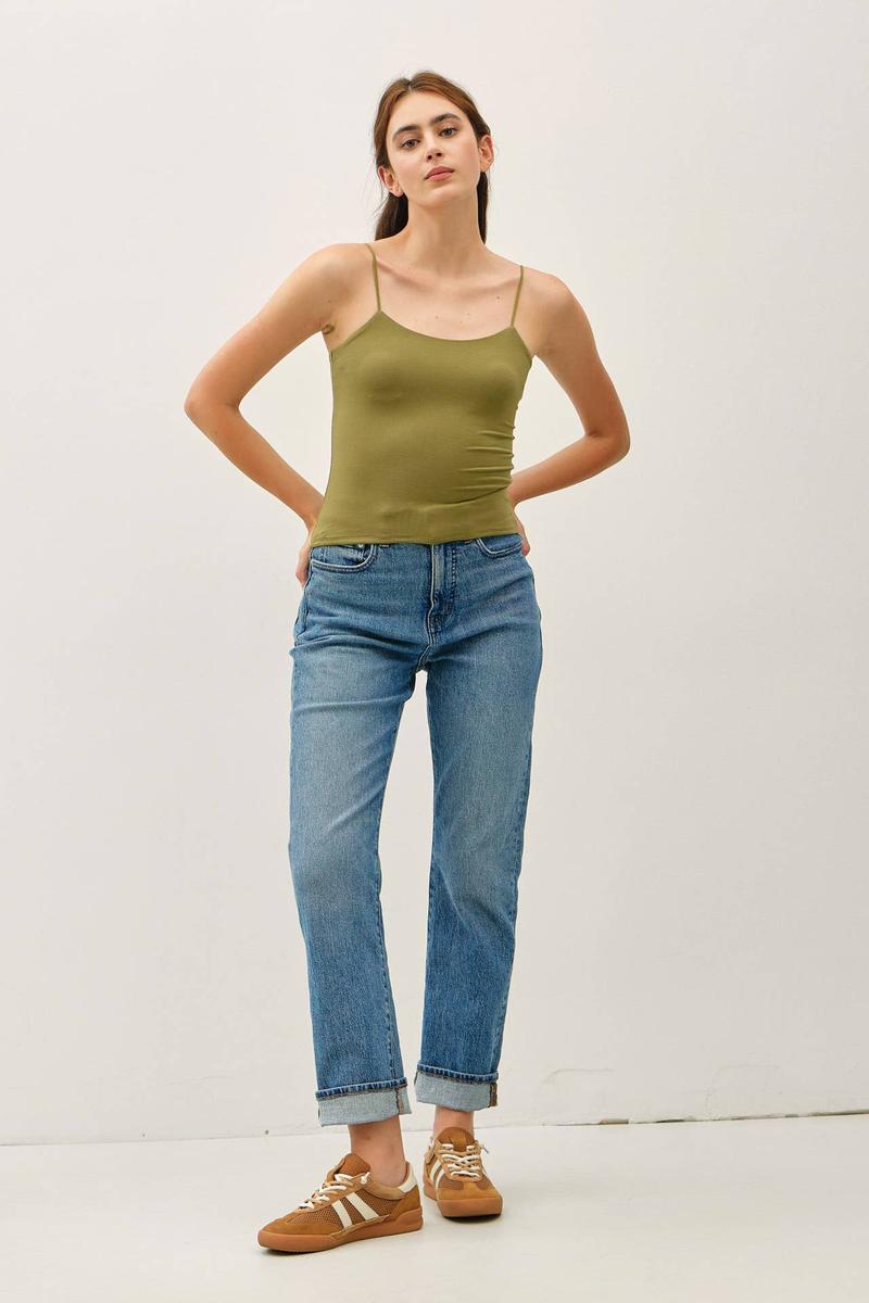 This lightweight, double-lined cami in Martini Olive offers a smooth, stretchy fit that moves with you for all-day comfort. Featuring delicate spaghetti straps and a flattering hip-length cut, it effortlessly transitions from casual days to dressed-up evenings. Crafted from a soft blend of 95% rayon and 5% spandex, this basic solid tank is a versatile wardrobe essential you'll reach for again and again.
