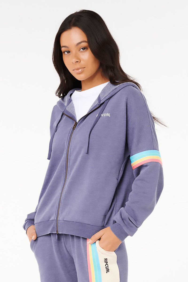 Experience effortless style and comfort with the Rip Curl Surf Revival Zip Thru in Blue. Crafted from a soft 250g cotton-poly fleece blend, this standard-fit hoodie features a garment burnout wash for a vintage look and breathable feel. Thoughtful details like embroidered logo, inner neck label, and cut-and-sew paneling elevate its design while ensuring durability. Perfect for your casual days, it combines relaxed fit with lasting quality to keep you comfortable whether you’re hitting the beach or the streets.