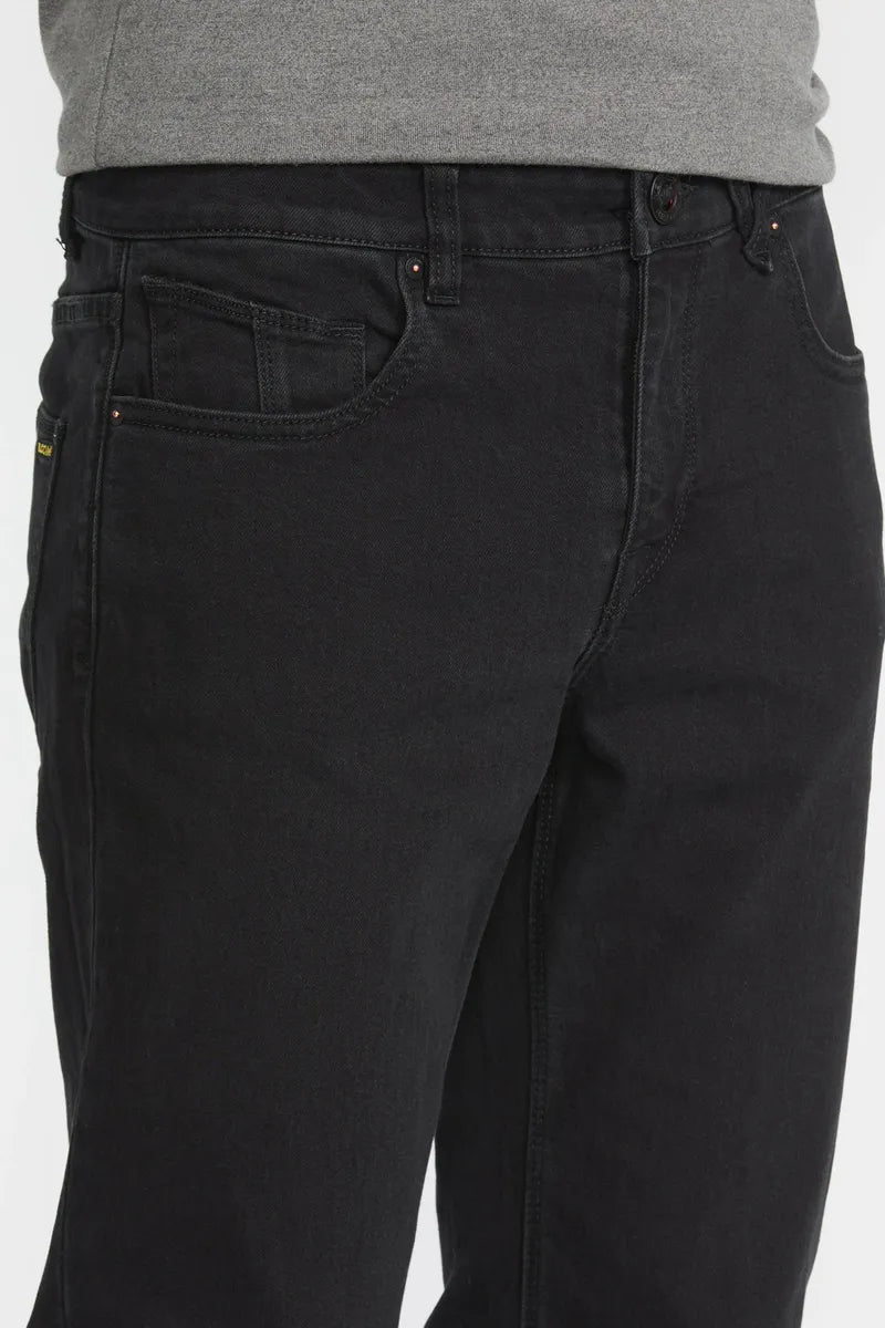 These Volcom Solver Modern Fit Jeans in Black Out combine sleek, slim styling with comfortable stretch fabric, perfect for everyday wear. Crafted with eco-friendly methods, they feature signature Volcom details and a contemporary rinse finish, delivering a fresh, modern look that stands out while supporting sustainable fashion. Elevate your casual wardrobe with jeans designed for both style and conscience.