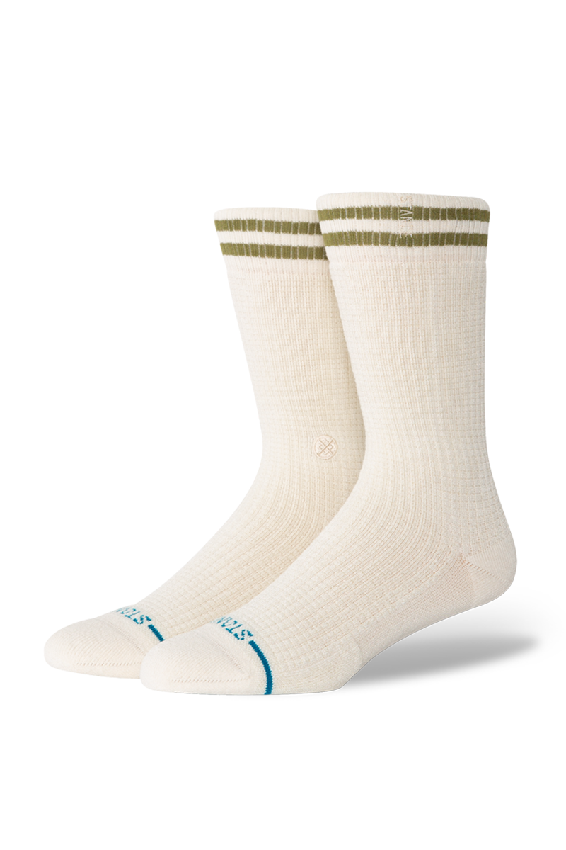 Experience unmatched comfort with these Stance crew socks, engineered with Butter Blend™ technology for a luxuriously soft feel against your skin. The Infiknit™ reinforced heel and toe construction ensures durability through countless wears, keeping your feet cushioned and supported day after day. The classic ivory colorway pairs effortlessly with any wardrobe, making these socks a reliable everyday essential that combines style with lasting performance.