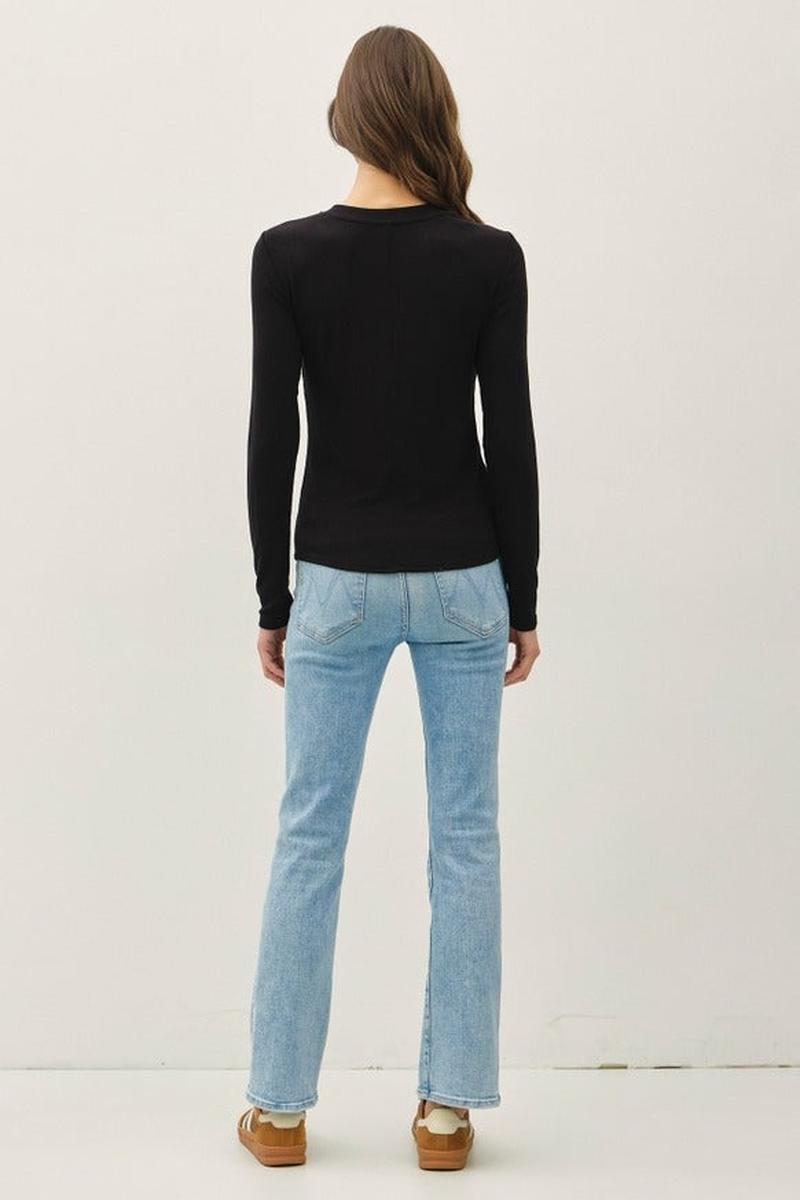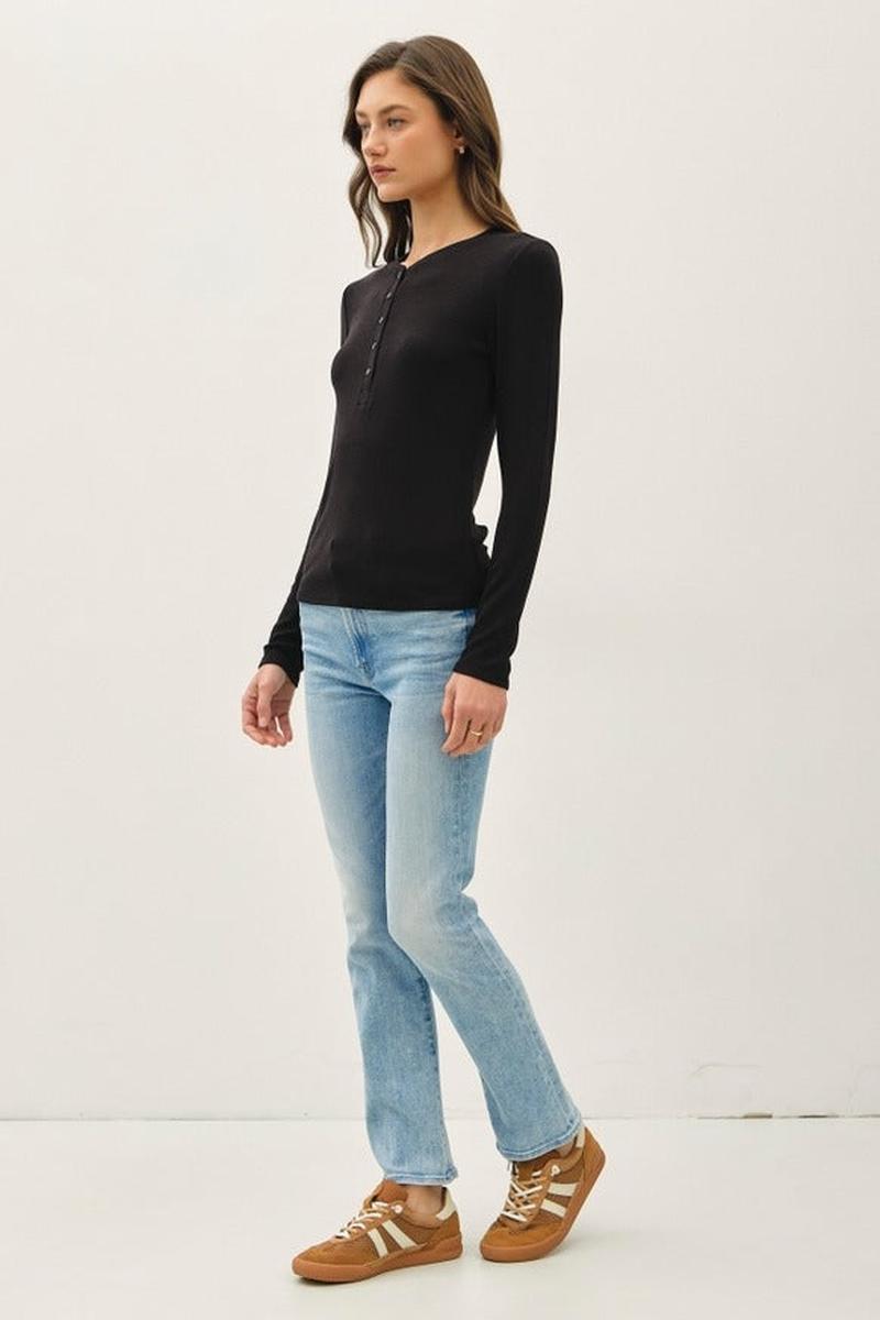 Be Cool - Modal Classic Ribbed Longsleeve Henley Basic Top in Black