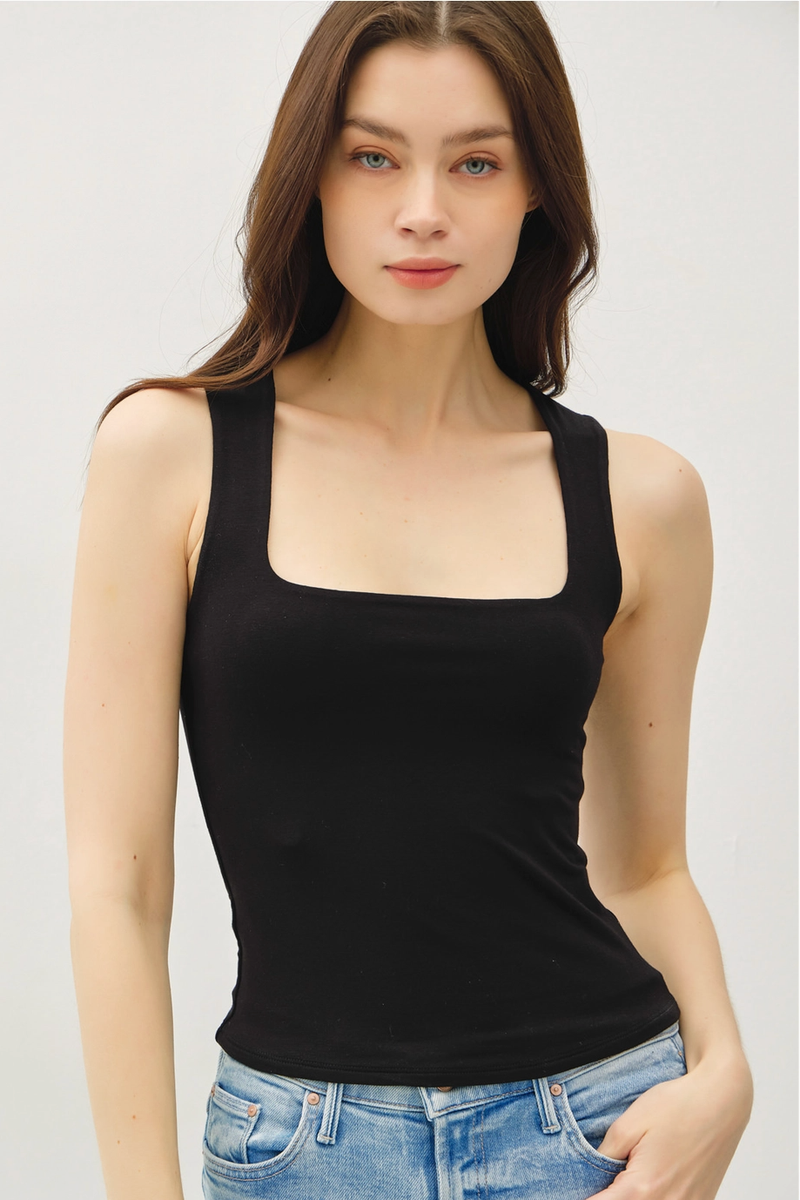 Be Cool - Soft Core Double Lined Square Neck Tank in Black