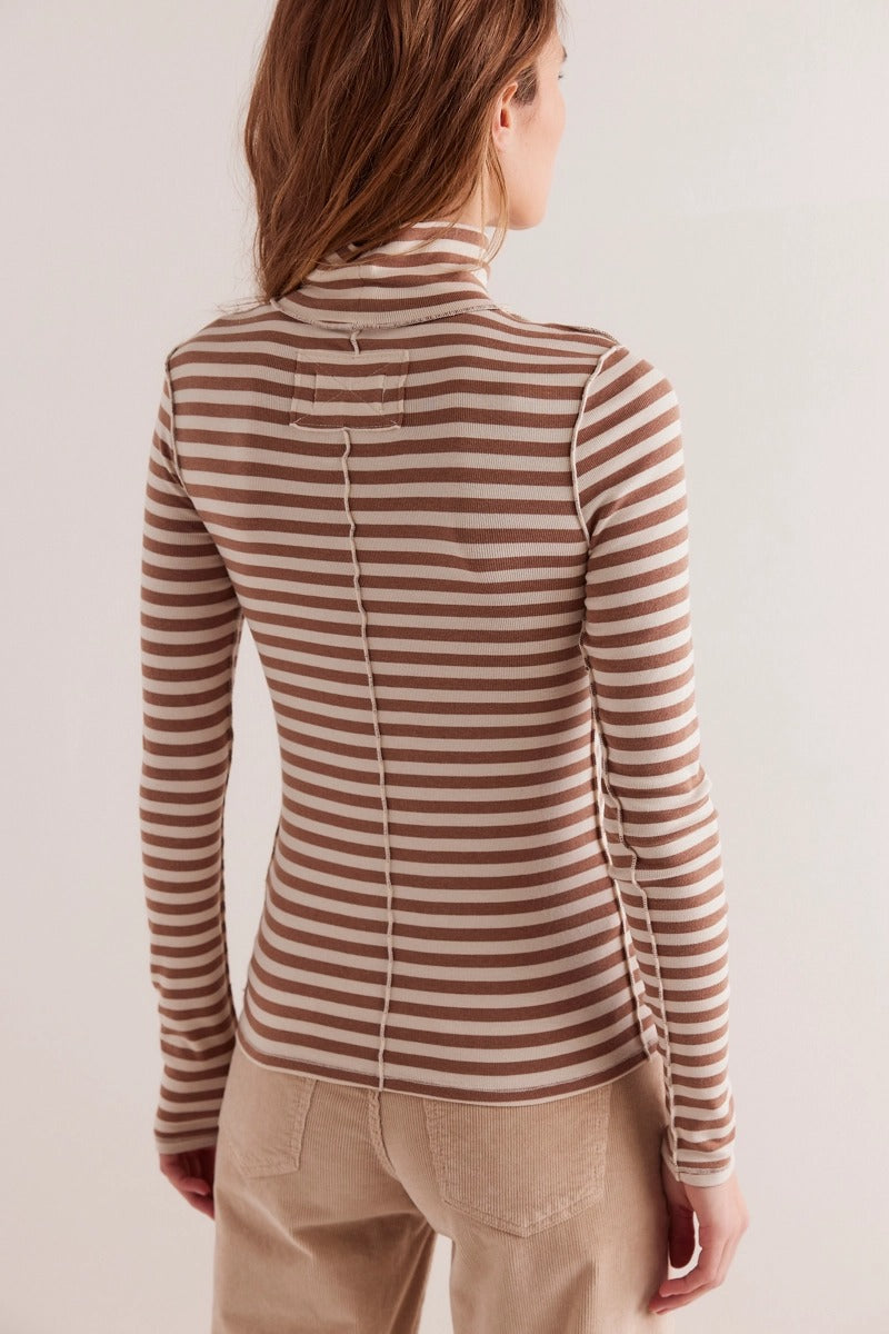 This slim-fitting turtleneck from the We The Free collection combines timeless style with modern details. Crafted from ribbed knit fabric featuring subtle stripes, it offers a flattering silhouette with long sleeves and an elegant turtle neckline. Exposed seam accents add a unique touch, making this piece perfect for layering or wearing alone with effortless flair.