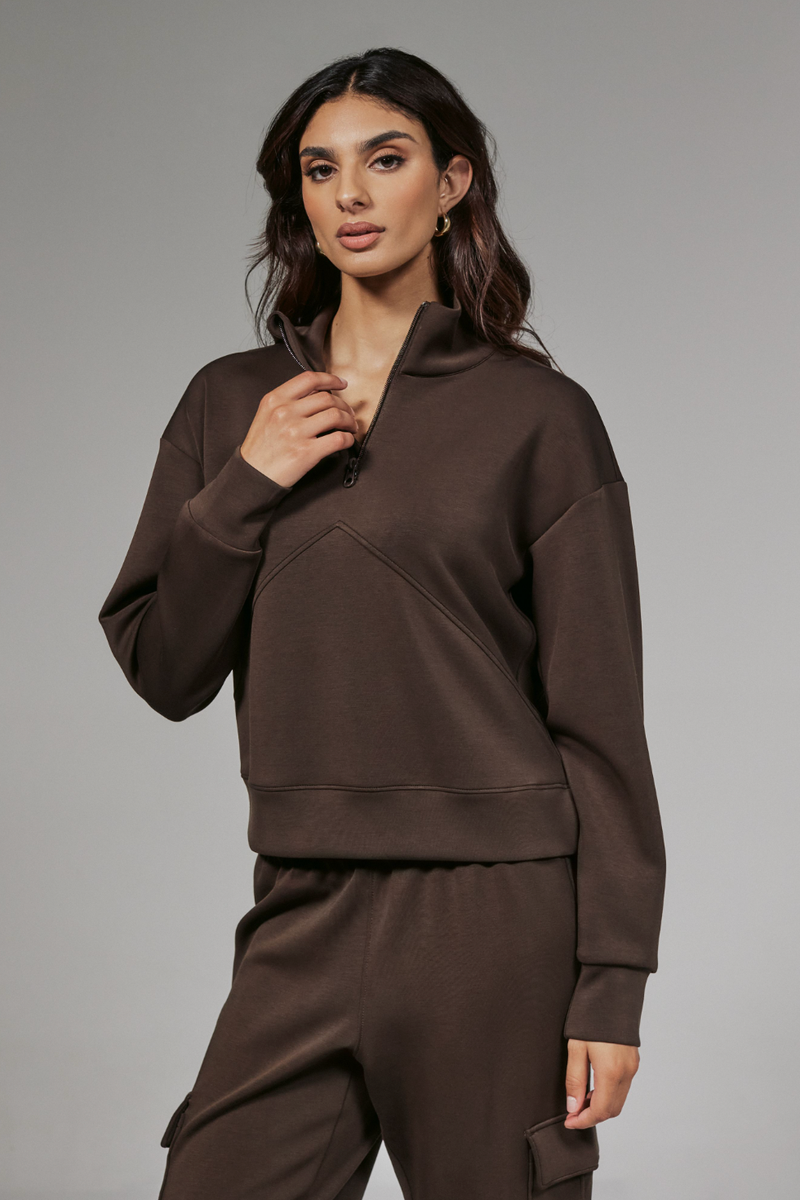 7DIAMONDS - REV™ Crop Quarter-Zip Pullover in Mocha