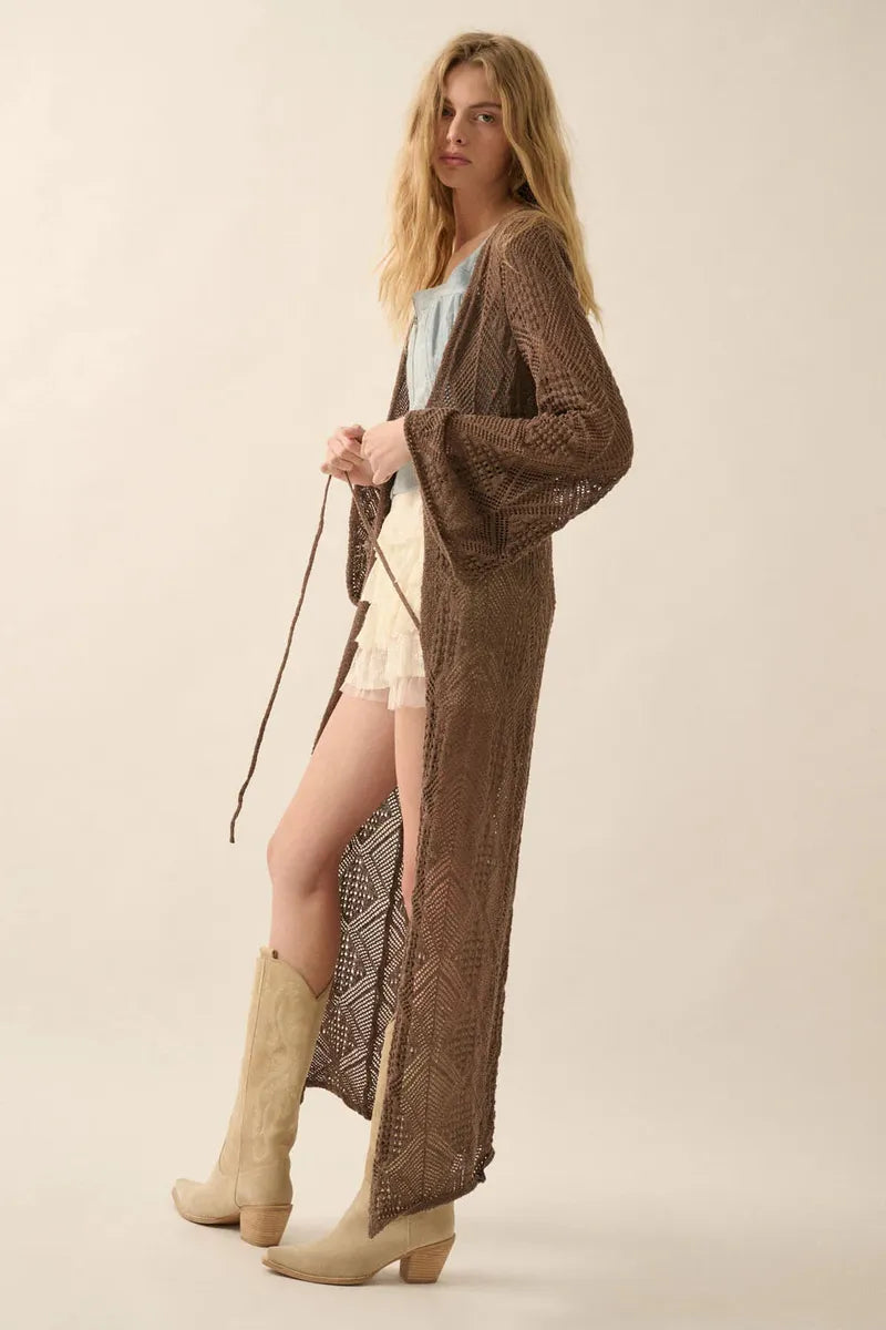 Promesa USA - Pointelle Crochet Knit Cardigan in Mocha