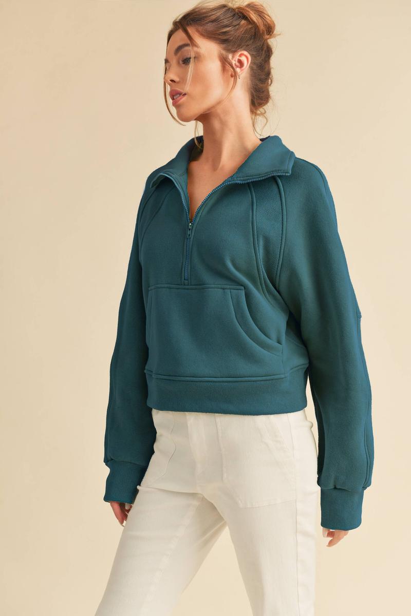 AEMI + CO - Dove Funnel Neck Half Zip in Teal